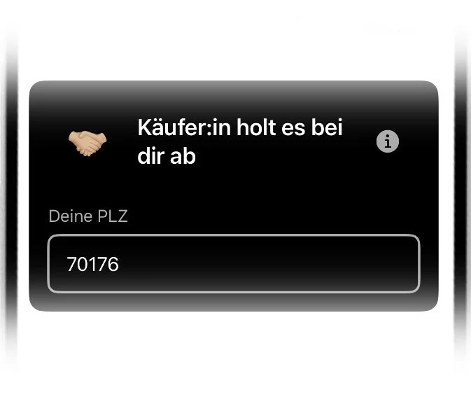 Du gibst deine PLZ an. So weiß die Käufer*in sofort, ob die Distanz passt. Deine genaue Adresse erfährt sie oder er erst nach dem Kauf – deine Privatsphäre bleibt geschützt.