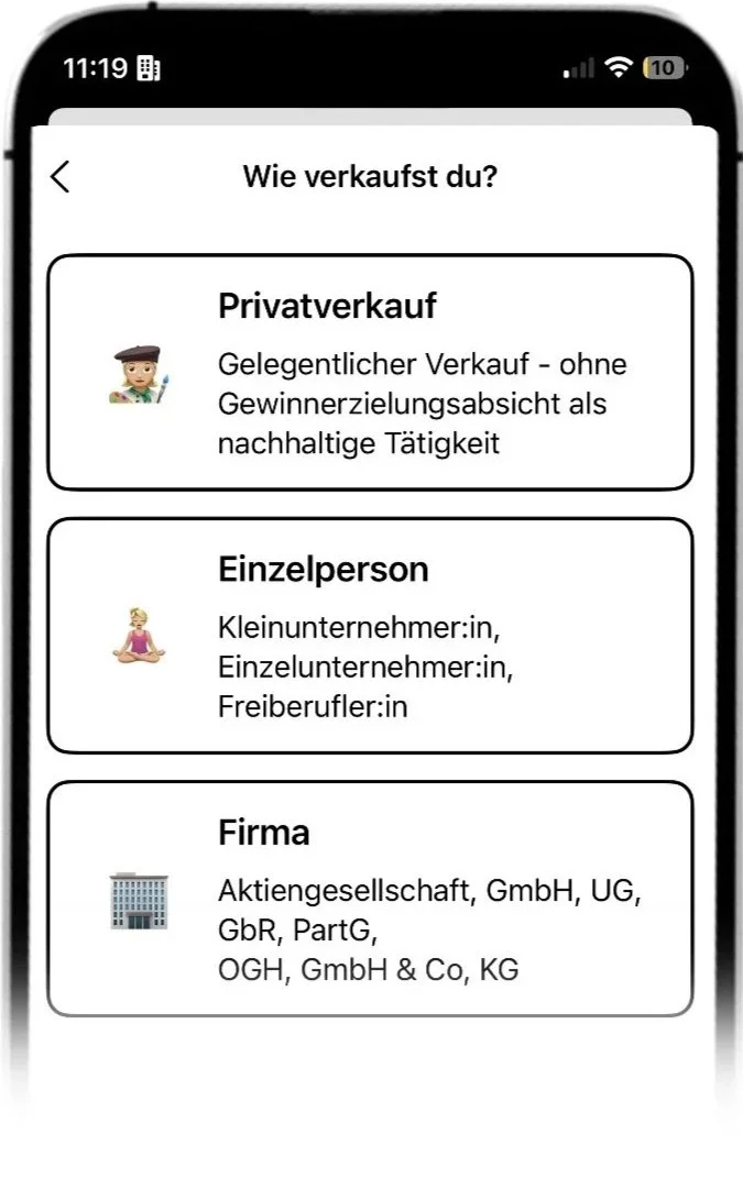 Du entscheidest, ob du privat oder als Unternehmen verkaufst.