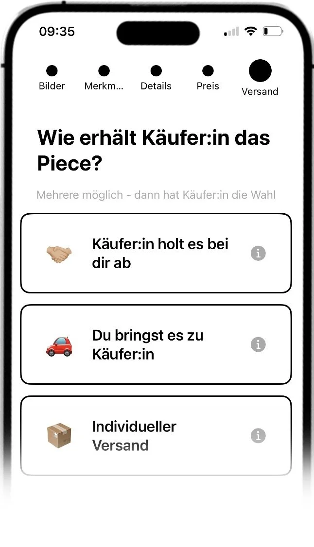 Für jedes Piece wählst du selbst, welche Versandoptionen und Konditionen gelten.
